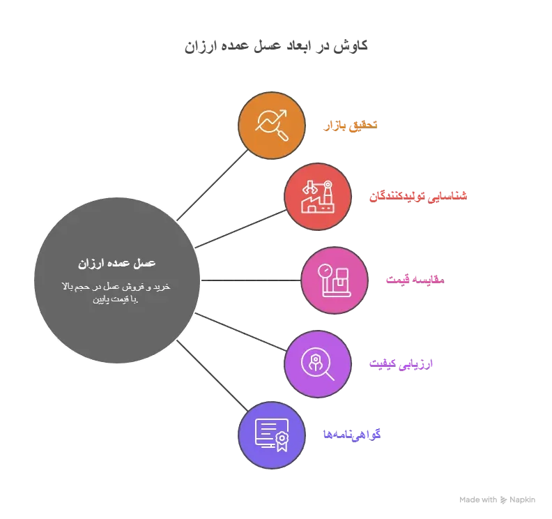 در انتخاب عمدهفروشی عسل ارزان، باید به سابقه فعالیت، تنوع محصولات و کیفیت خدمات توجه کرد. برخی عمدهفروشان دارای مجوزهای بهداشتی و تأییدیههای کیفیت هستند که نشاندهنده اعتبار آنهاست. همچنین، بررسی نظرات مشتریان قبلی، دریافت نمونه محصول و مذاکره درباره شرایط پرداخت از جمله مراحل مهم در خرید از این مراکز است.